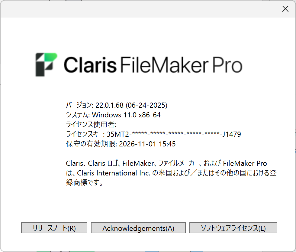 Win版のFileMaker Pro 2025が永久に使用可能。